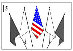 NOTE: the U.S. flag should always be on its own right in relation to other flags on adjacent staffs — to the left of the observer —except when displayed as in #5. Excerpts From The Flag Code of The United States —Public Law 94-344, July 7, 1976.