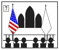 No other flag or pennant should be placed above or, if on the same level, to the right of the flag of the United States of America, except during church services conducted by naval chaplains at sea or for personnel of the Navy, when the church pennant may be flown above the flag.